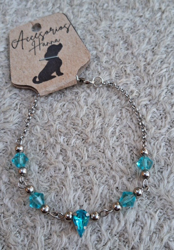 Pulsera de Acero quirúrgico acrílicos Dije Gema Turquesa