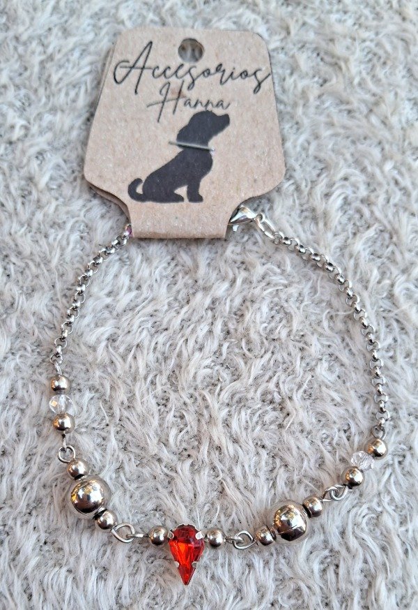 Pulsera de Acero quirúrgico cristales y dije de Gema Gota