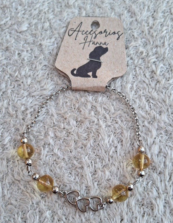 Pulsera de Acero quirúrgico pelotitas de vidrio-Dije triple corazón de fundición
