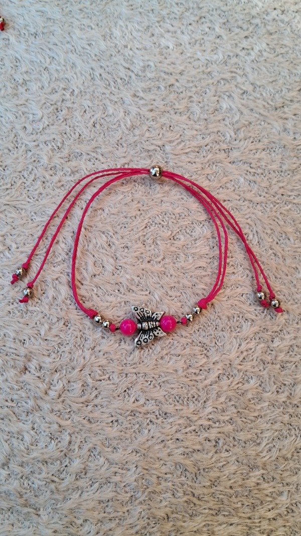 Pulsera de hilo encerado Fucsia dije acrílico mariposa 2