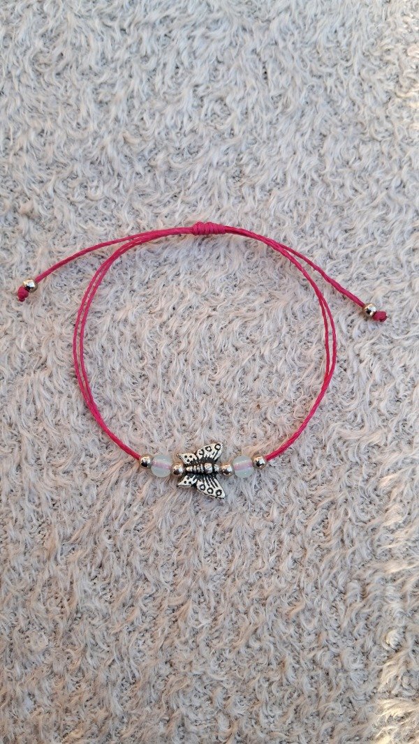 Pulsera de hilo encerado Fucsia Dije mariposa acrílica 1