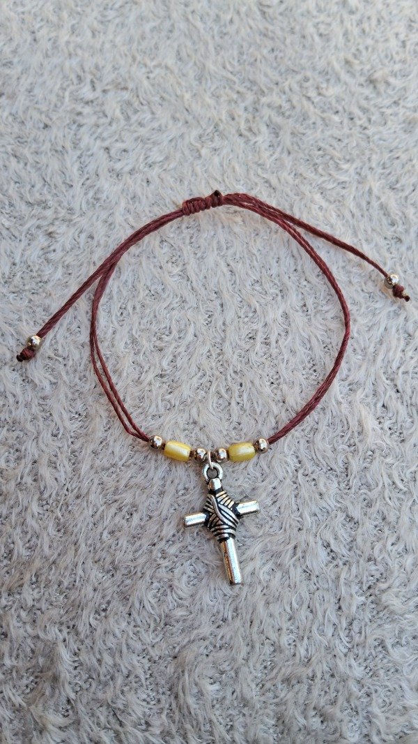 Pulsera de hilo encerado marrón-Dije Cruz
