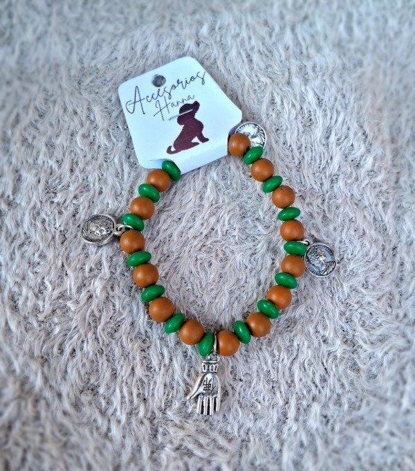 Pulsera elástica bolitas acrílicas dije mano de la abundancia