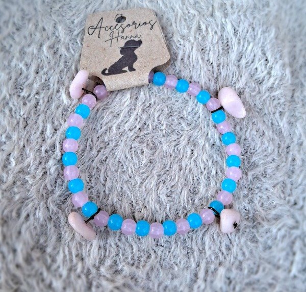 Pulsera elástica bolitas acrílicas rosadas-celestes dijes piedras