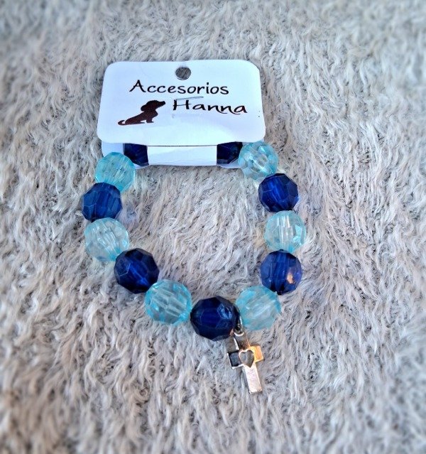 Pulsera elástica pelotitas acrílicas facetadas-dije cruz corazón