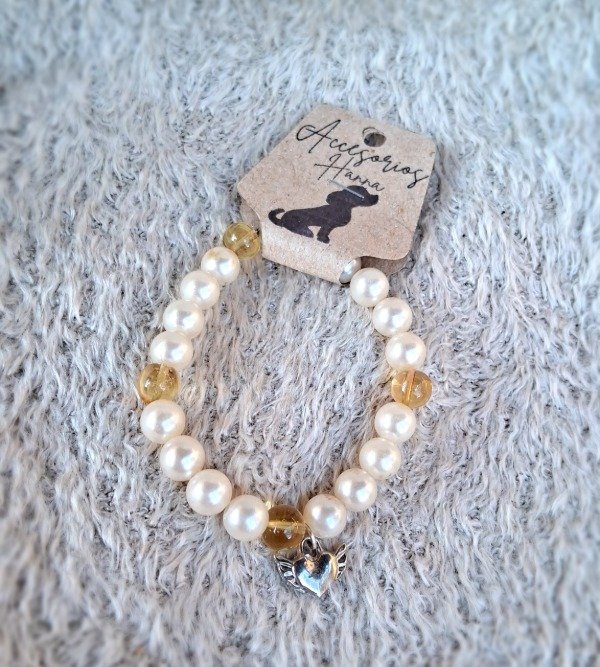 Pulsera elástica perlas y pelotitas de vidrio-dije de fundición corazón con alas