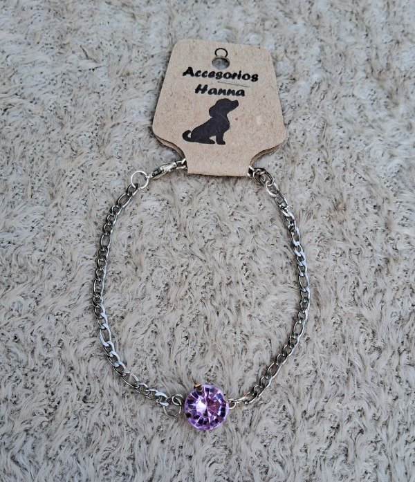 Pulsera eslabones de Acero quirúrgico-Dije Gema violeta