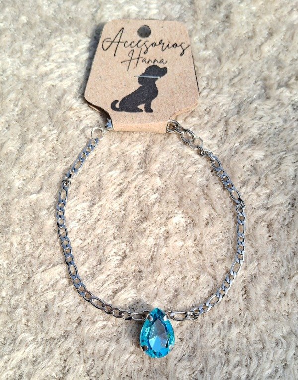 Pulsera eslabones planos de Acero Quirúrgico-Dije Gema gota turquesa