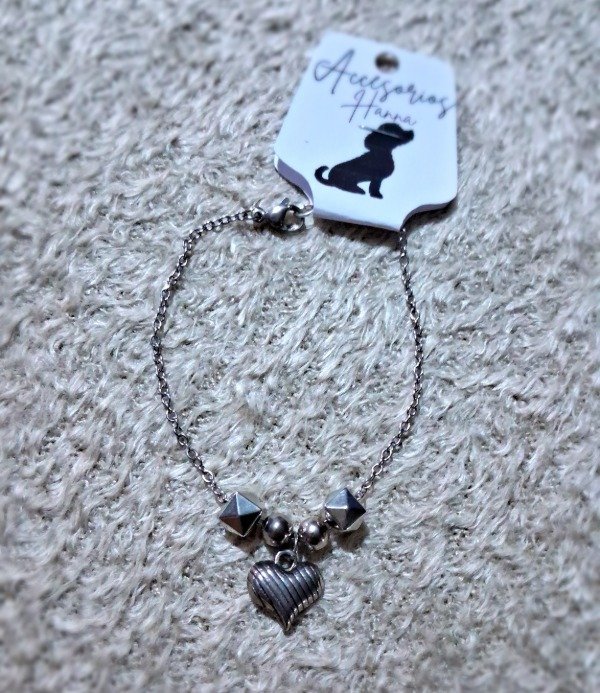 Pulsera fina de acero quirúrgico dije corazón inflado de fundición