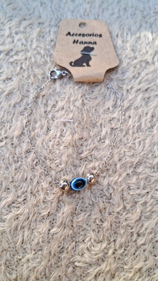Pulsera fina de acero quirúrgico-ojo Turco protector acrílico