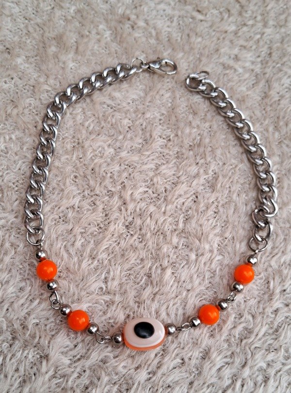 Tobillera pelotitas color naranja-Dije acrílico Ojo turco protector